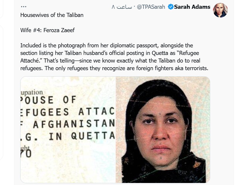 راهاندازی کمپین افشای همسران طالبان؛ سارا آدامز عکس پنج زن را منتشر کرد